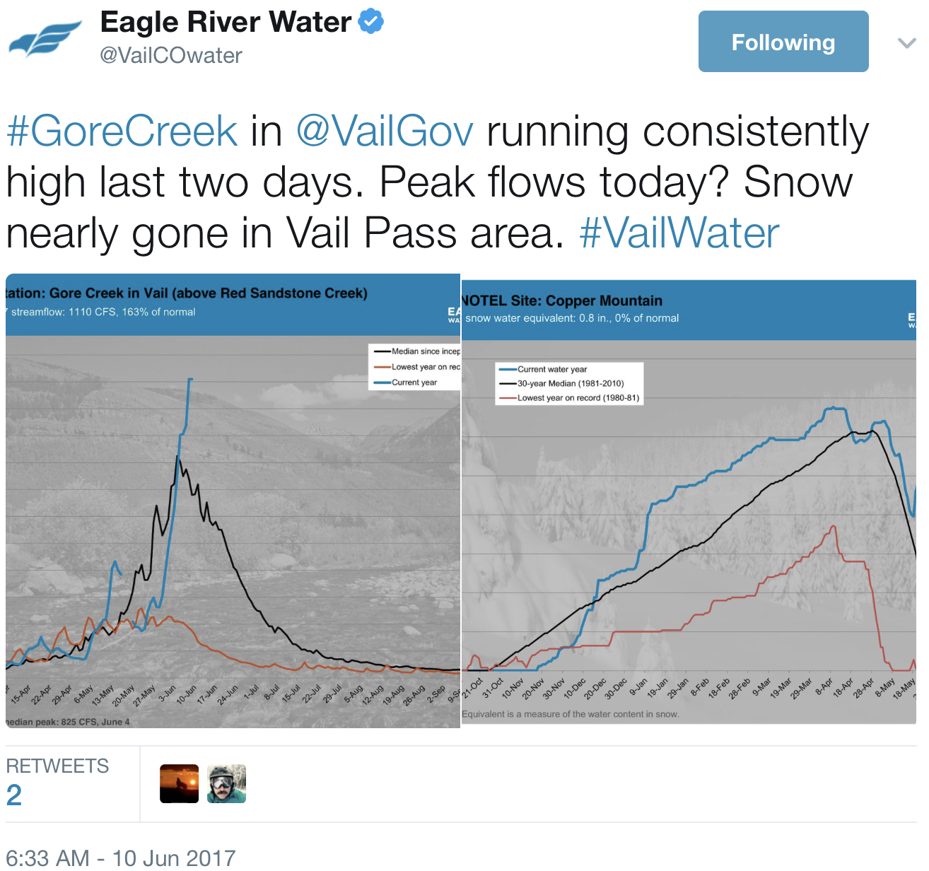 “A benchmark for us is that both the Eagle River and Gore Creek have been above the median for the whole season, which is great,” Johnson said. “Once it peaked, it’s stayed above the norm, which is good for fishing and boating.”[…]
