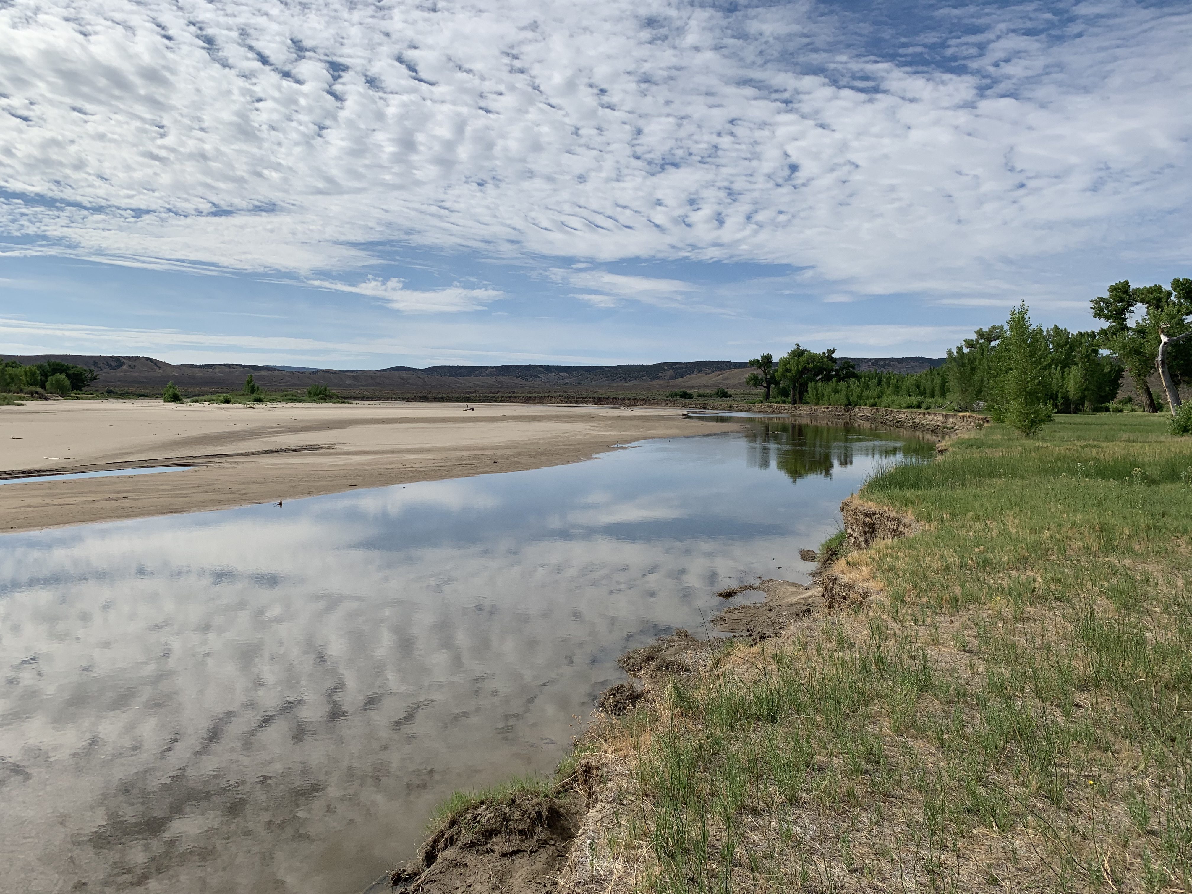 The Yampa River at Deerlodge Park July 24, 2021 downstream from the confluence with the Little Snake River. There was a ditch running in Maybell above this location. Irrigated hay looked good. Dryland hay not so much.