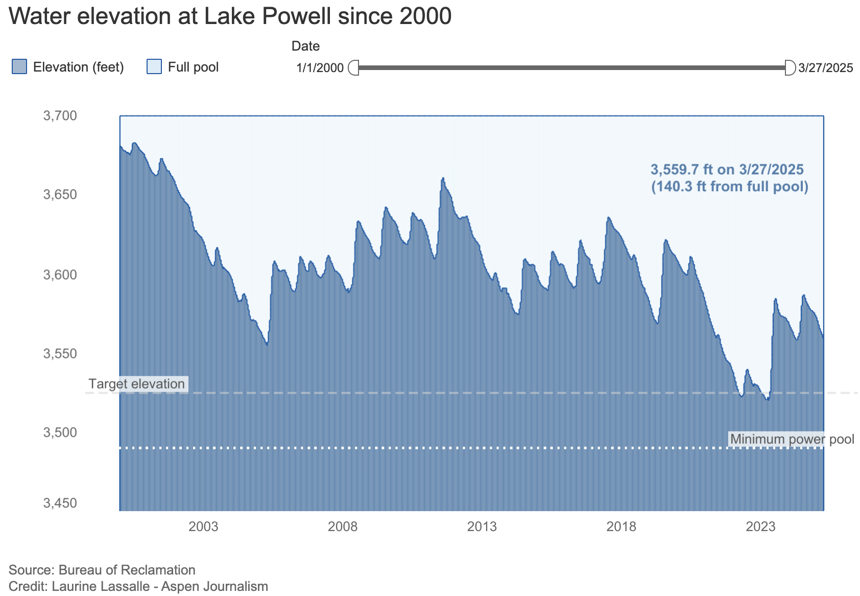 The February letter comes as water managers from all seven Colorado River Basin states are in the midst of deciding how Lake Powell and Lake Mead will be operated and cuts will be shared after 2026 when the current guidelines expire. In March 2024, each basin submitted competing proposals to the U.S. Bureau of Reclamation. In January, federal officials with the outgoing Biden administration released their analysis of five different potential ways forward and did not include either basin’s proposal, but a “basin hybrid” that incorporated elements from both.