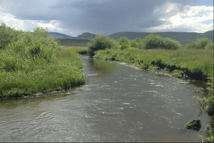 The Tomichi Water Conservation Program involves regional coordination between six water users on lower Tomichi Creek to reduce consumptive use on irrigated meadows as a watershed drought management tool. The project will use water supply as a trigger for water conservation measures during one year in the three-year period. During implementation, participating water users would cease irrigation during dry months. Water not diverted will improve environmental and recreational flows through the Tomichi State Wildlife Area and be available to water users below the project area. Photo credit: Business for Water.