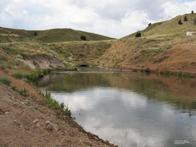 The July 17, 2019 irrigation tunnel collapse and subsequent breach of a canal wall cut off irrigation to more than 100,000 acres of farmland in Wyoming and Nebraska. Work to repair the irrigation tunnel and stabilize a sinkhole that formed above the tunnel’s roof is continuing.