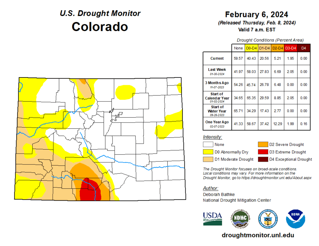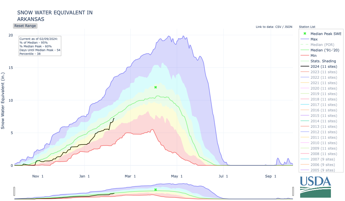 There’s lower-than-normal snowpack in the northeast, including the southern portion of the Bighorn Mountains and some parts of the Black Hills on the South Dakota border.