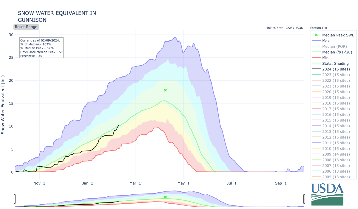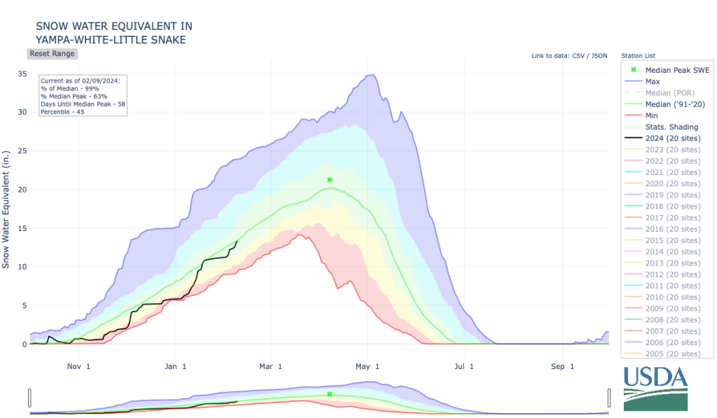Wyoming is emerging from a fairly mild winter that has been devoid of brutal, prolonged cold snaps or massive snow dumps. With a “snow water equivalent” hovering around 94% of the median across the state, snowpack is “looking pretty good,” according to Natural Resources Conservation Service Water Supply Specialist Jeff Coyle.