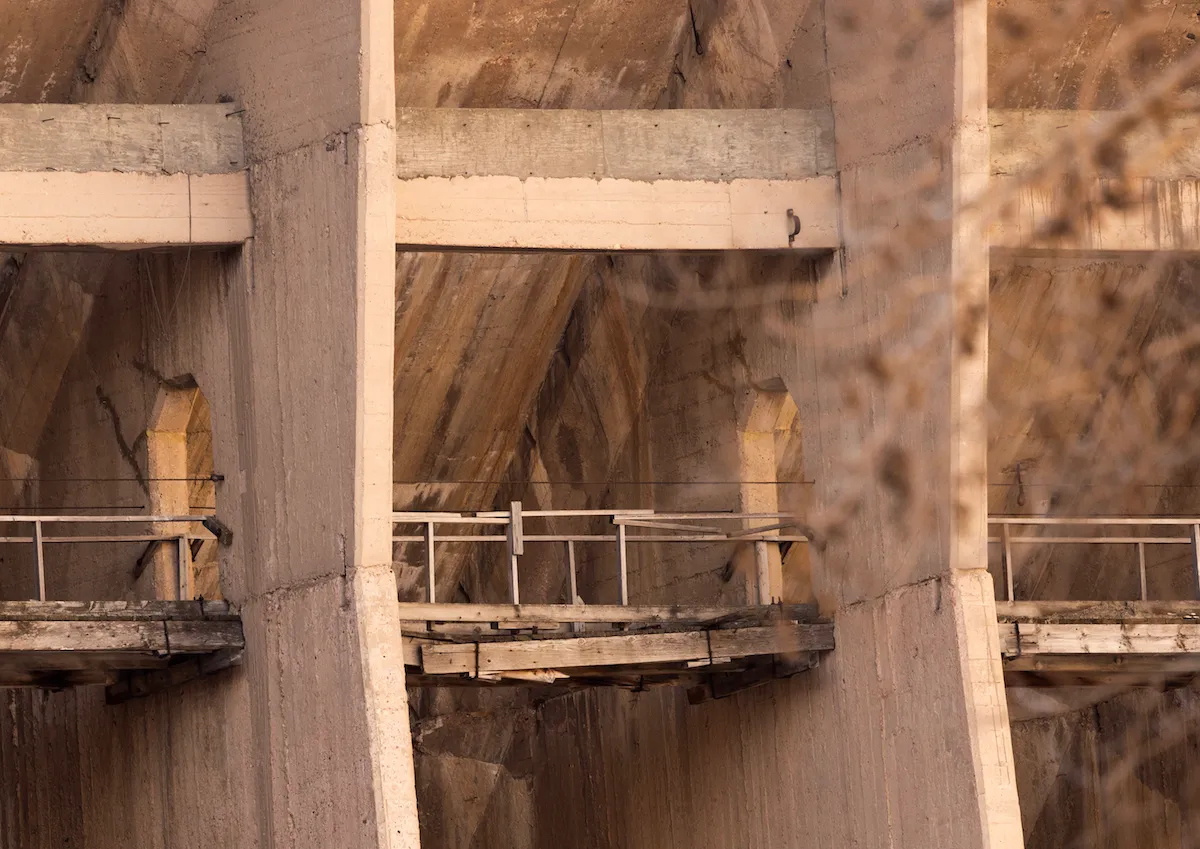 Migrating cracks, observed from usual vantage points, were apparent. Engineers took a closer look by rappelling down the structure. Crack measurement devices were installed, and in November 2019 the data led to a state order to maintain the reservoir behind the dam at a lower level — to ease pressure on the structure — resulting in a 45% squeeze on available storage water for irrigation.