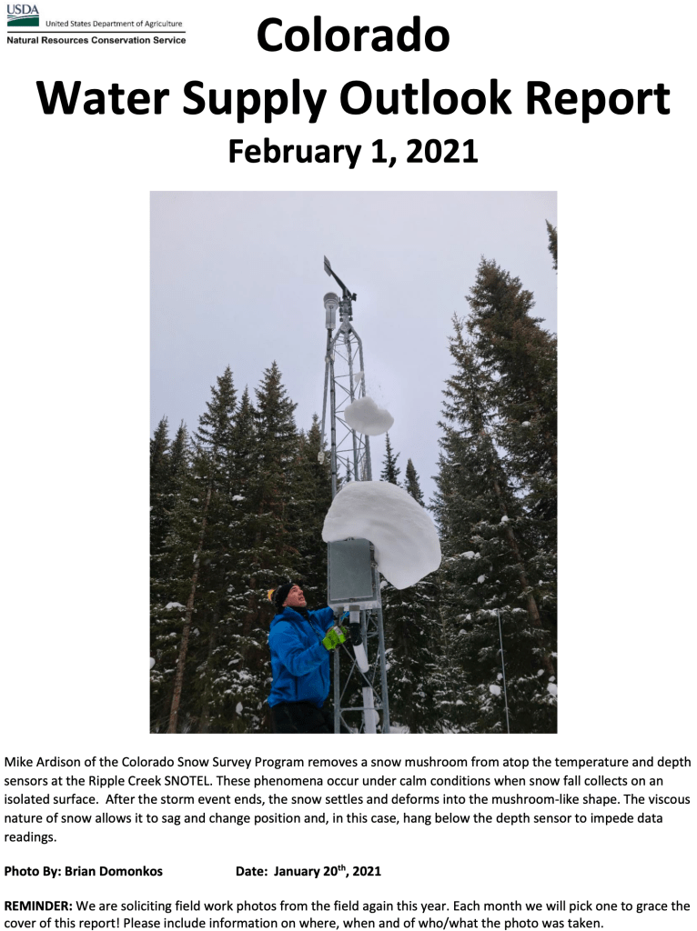 According to the U.S. Department of Agriculture National Water and Climate Center’s snowpack report, the Wolf Creek Summit, at 11,000 feet of elevation, had 20.4 inches of snow water equivalent as of 2 p.m. on Jan. 27.