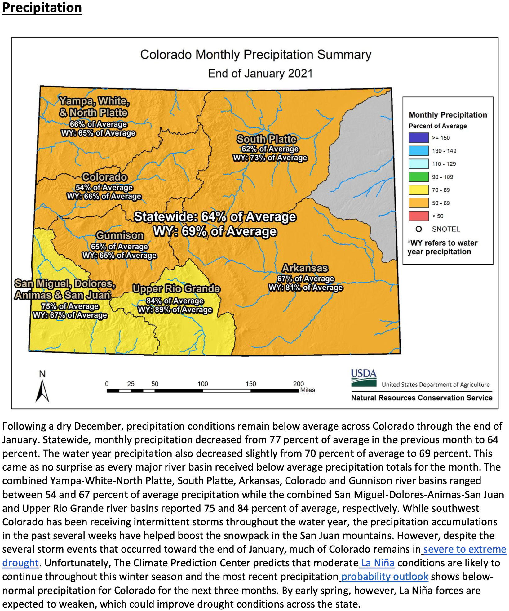 South Platte River Basin High/Low graph February 11, 2021 via the NRCS.