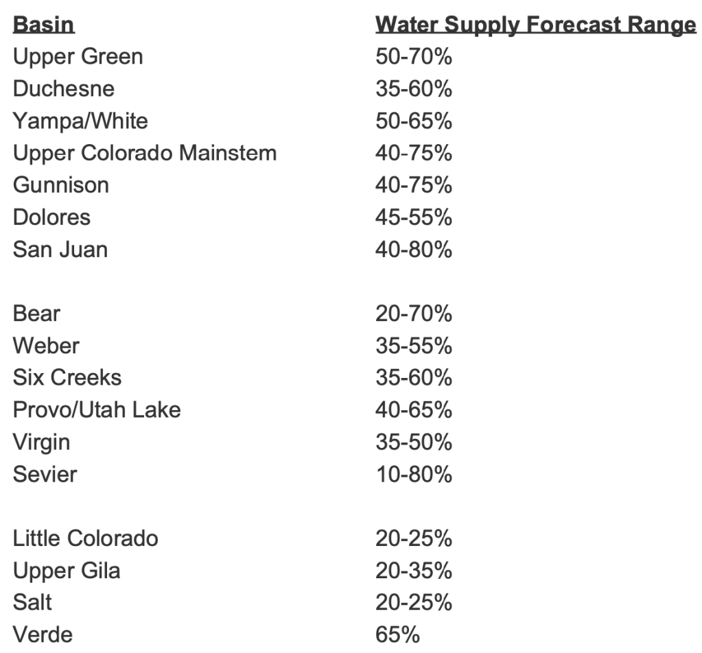 Snowpack levels at NRCS measurement sites on Grand Mesa, which feeds those reservoirs, range from 62% to 72% of normal.