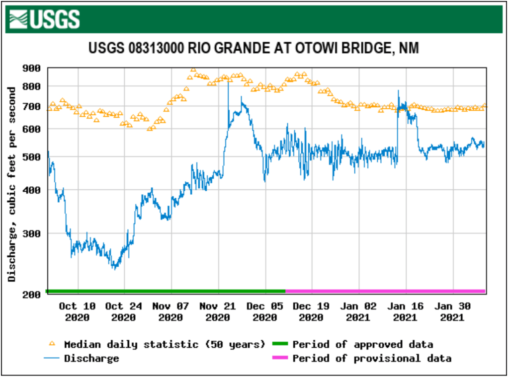 Upper Rio Grande River Basin High/Low graph February 11, 2021 via the NRCS.