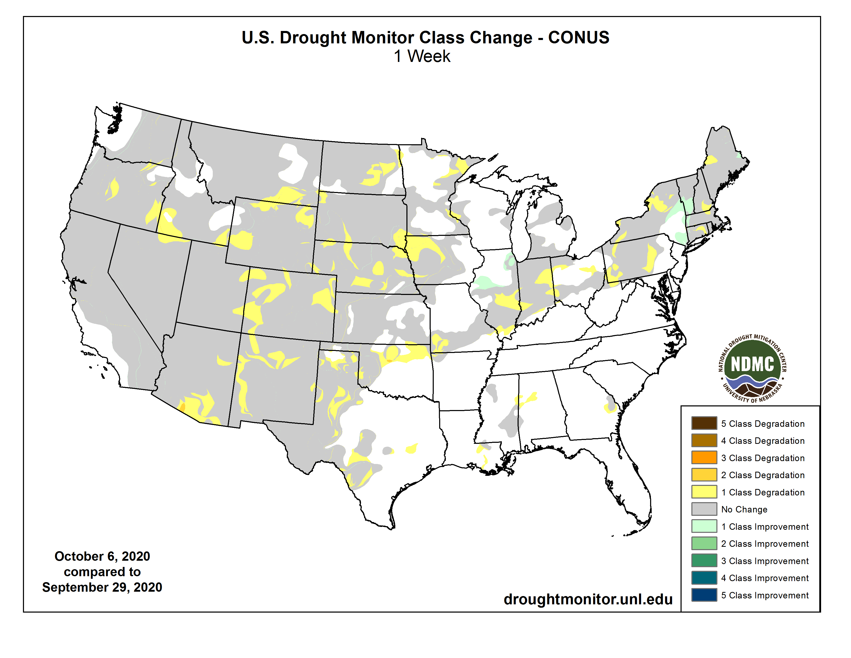 US Drought Monitor one week change map ending October 6, 2020.
