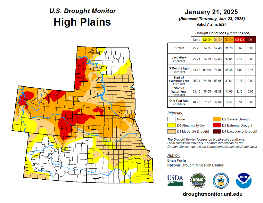 Northern areas were warmer than normal with departures of 3-9 degrees above normal in the Dakotas and northeastern Montana. Colder-than-normal temperatures dominated the rest of the region with some areas of Wyoming 12-15 degrees below normal for the week. Areas of western South Dakota, southwest North Dakota, southeast Montana and northeast Wyoming improved this week as conditions over the last few months were reassessed and the indicators were not aligning with the drought depiction. In many instances the drought is still considered severe or worse, but where the intensity was reduced, it was due to not all the indicators converging to what was being shown. In Wyoming, conditions were improved in the central and southwest where severe and moderate drought as well as abnormally dry conditions were improved. Some extreme drought was extended in the Wind River where snow and precipitation numbers supported the change…