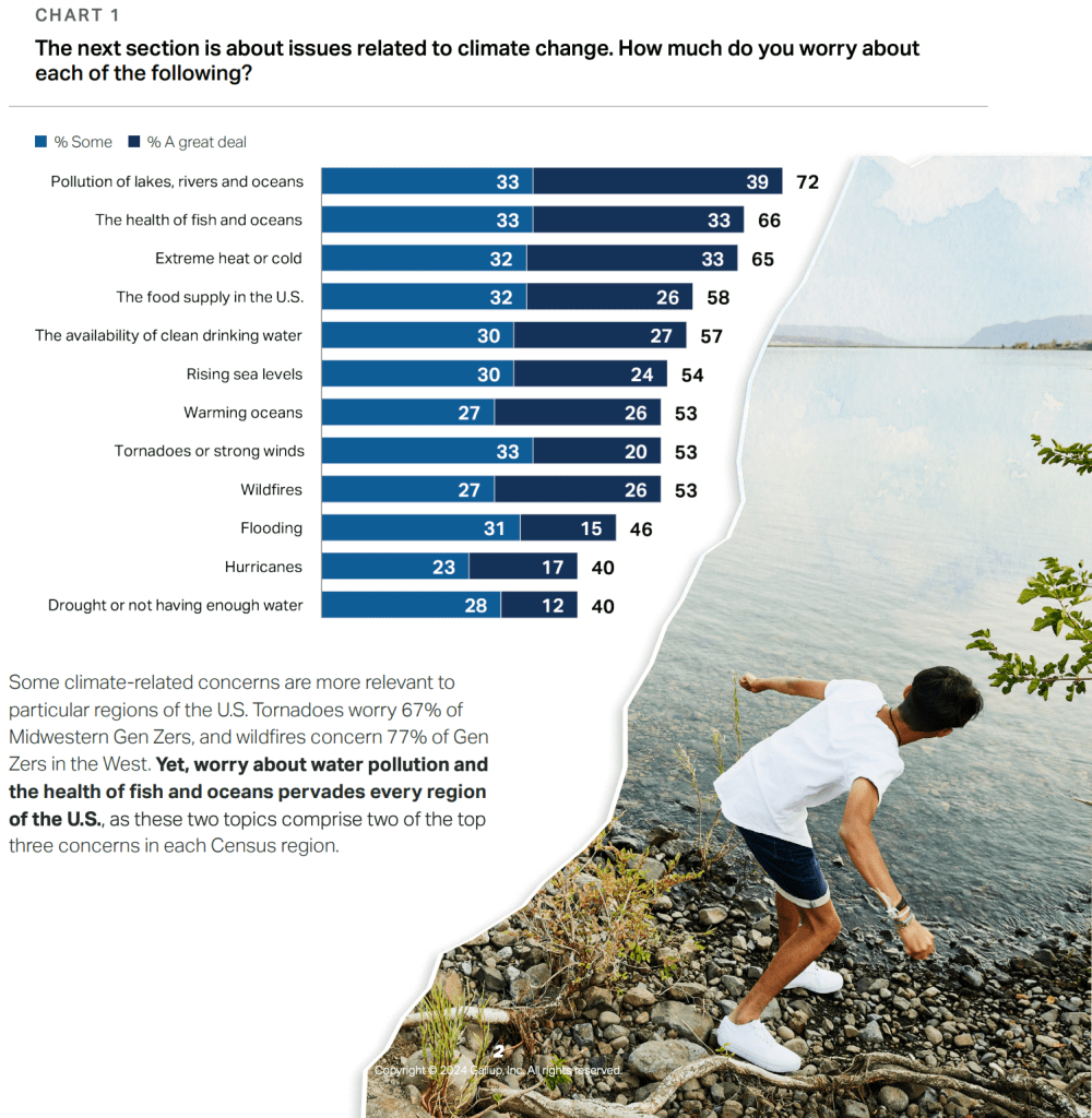 74% of Gen Zers say climate change threatens the clean water supply in the U.S.