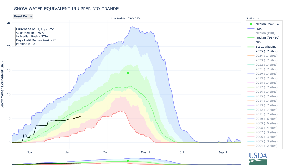 โTwo things,โ said Cleave Simpson, general manager of the Rio Grande Water Conservation District and local hay grower. โWe didnโt have continuous steady snowpack in the winter months that put us in a good position, and then the volume of snow we got was on top of drier conditions last fall where moisture, instead of showing up in a stream, ends up in the ground in soil conditions.