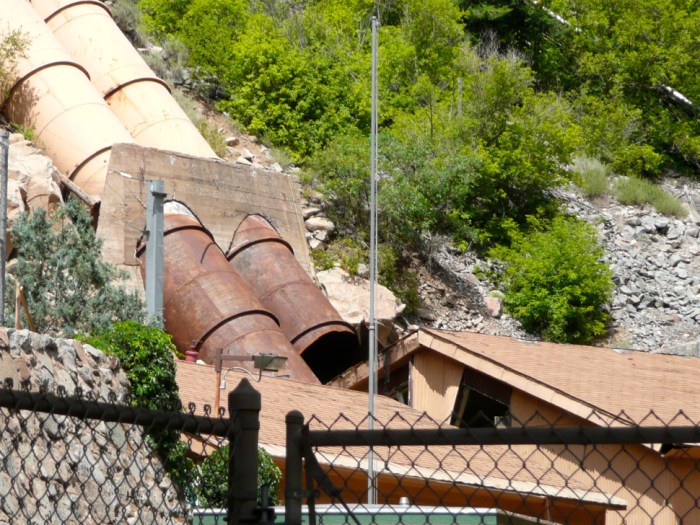 The blown-out penstock in 2007 at the Shoshone plant. Photo credit: Brent Gardner-Smith/Aspen Journalism