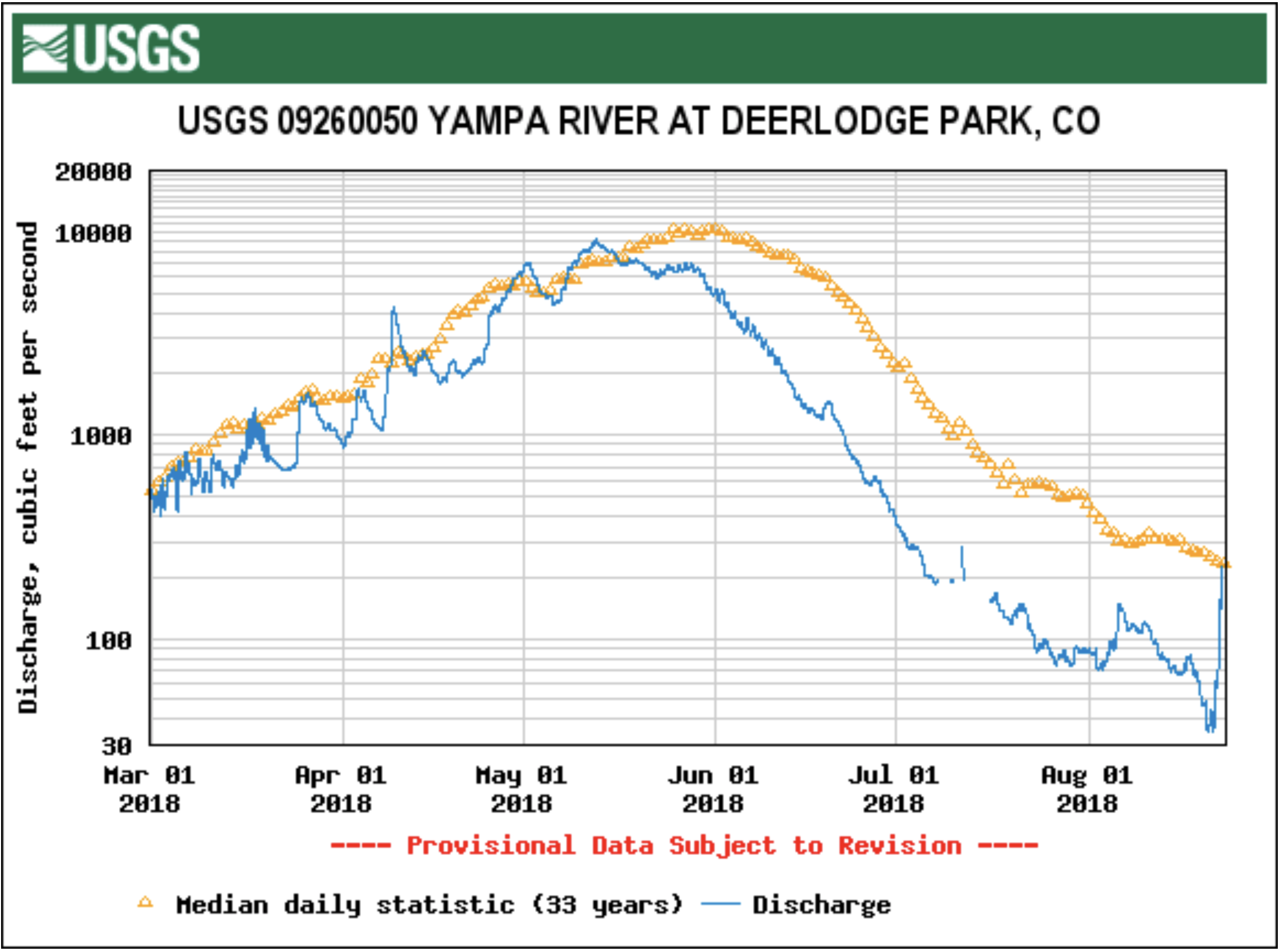 FEMA designates 2,500 cfs as a 10-year flood level just below Dillon Dam, while 3,350 cfs there would be a 100-year flood level. The amount of runoff pouring into the reservoir varies widely, depending on weather conditions and snowpack, from a low inflow of 410 cfs in the drought year of 2012 to a high of 3,408 cfs in 1995.