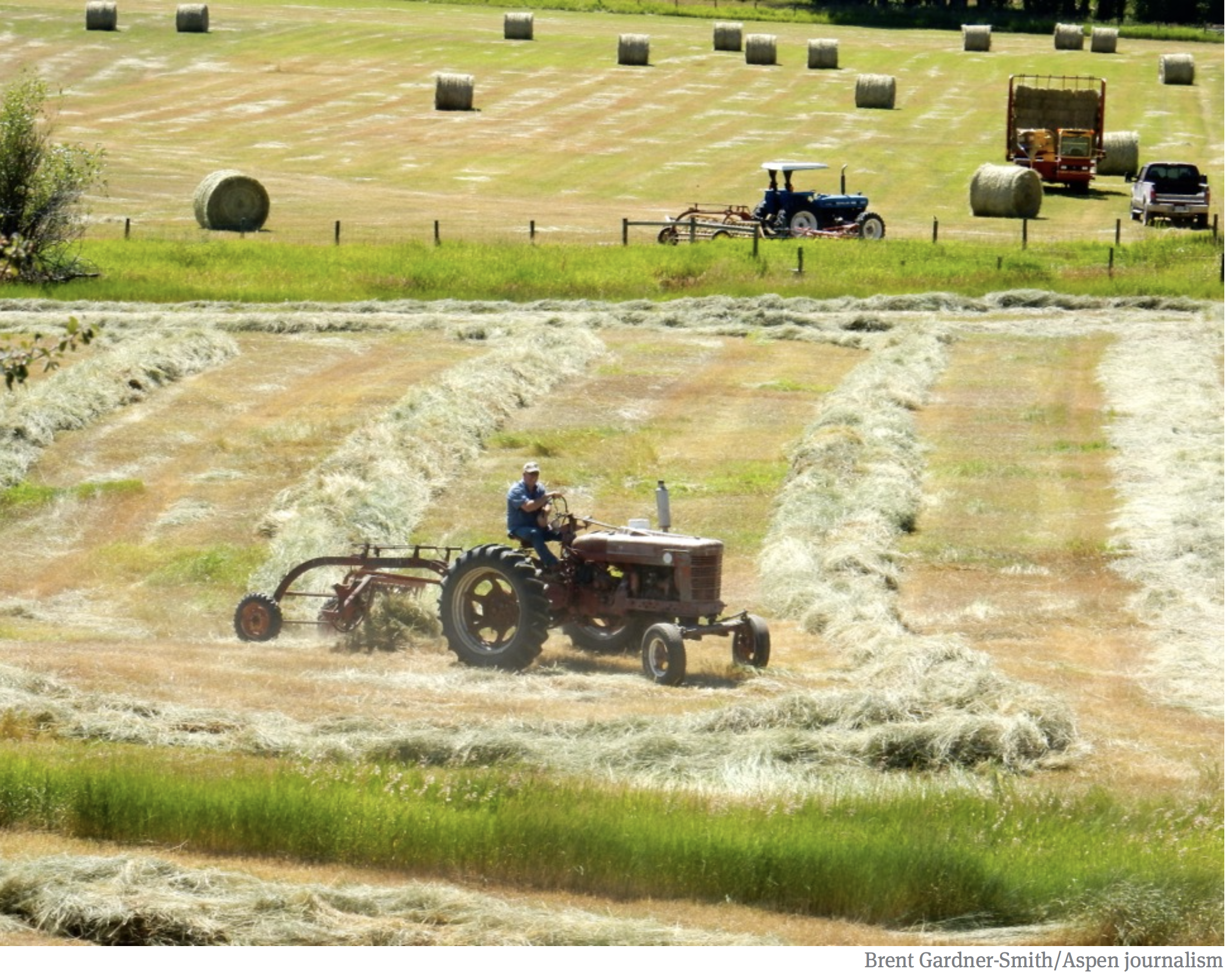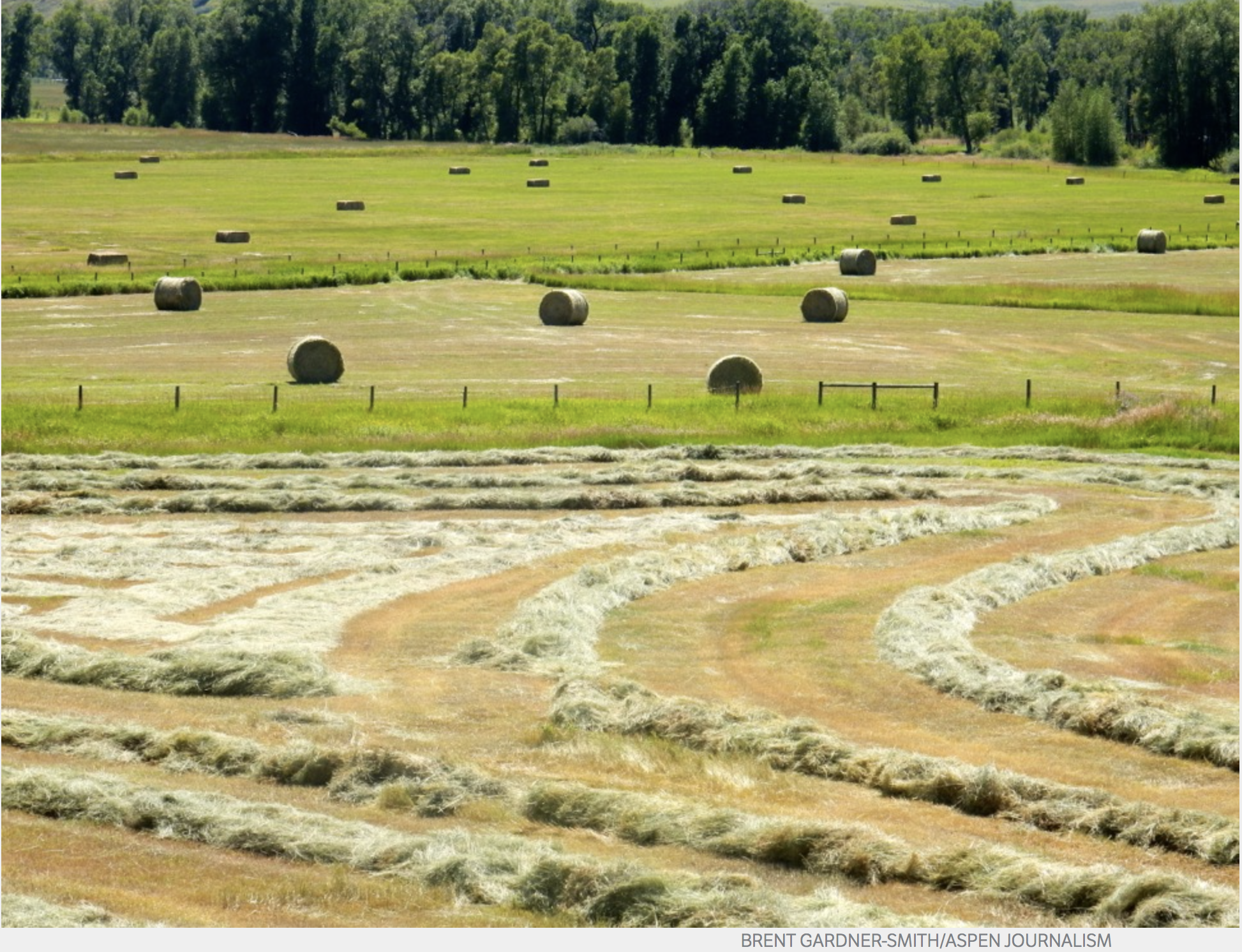 Well-tended fields along the White River west of Meeker irrigated by the Meeker Ditch. In 2014, the ditch was directed by the division engineer to divert less water at its headgate.