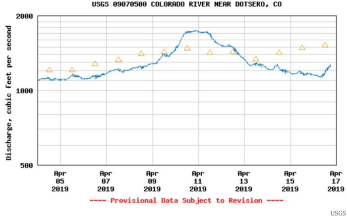Lee said that about 1,400 acre-feet of water from Green Mountain Reservoir in Summit County has been released so far to meet the Shoshone Outage Protocol requirements. He said the protocol will probably be relaxed in the next week or two because spring runoff will begin to naturally boost river flows.