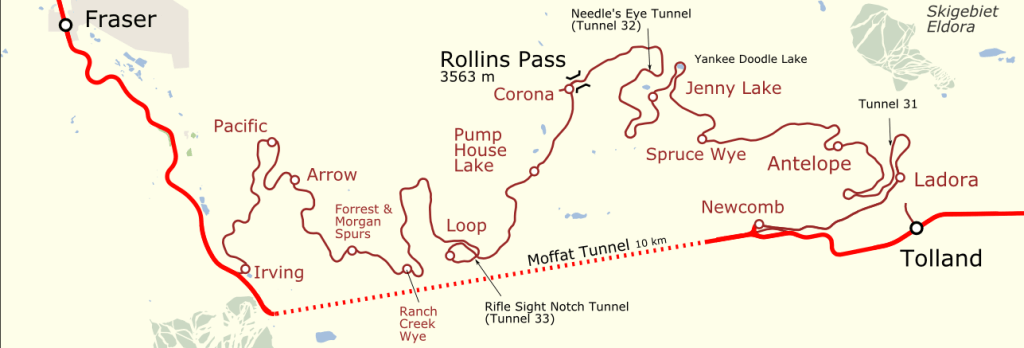 At that time, Rollins Pass, which climbed the Rockies outside of Denver to connect the Front Range to northwestern Colorado was one of the most dangerous rail passes in the world — cattle died of cold, passengers would be stranded for days, and, despite its name, the pass was routinely impassable during the winter months.