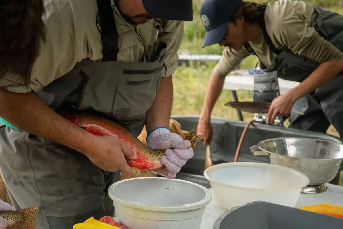 Beavers are good vectors. The Rio Grande Cutthroat trout is a threatened species and is currently seeing a resurgence in the Rio Grandeโs watersheds, but it is a sensitive species, particularly to Whirling Disease. When beavers are taken from one water source to another they have to be quarantined for three days and have their water changed every 24 hours to ensure they wonโt be carrying any diseases with them.