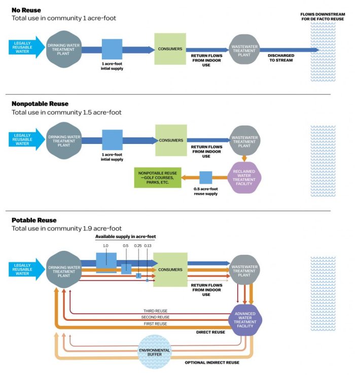 “The findings would be surprising to you, because there’s a lot more reuse of water in that particular interaction — between treated wastewater and reuse as drinking water or as municipal water — than you would think,” Grimm said.
