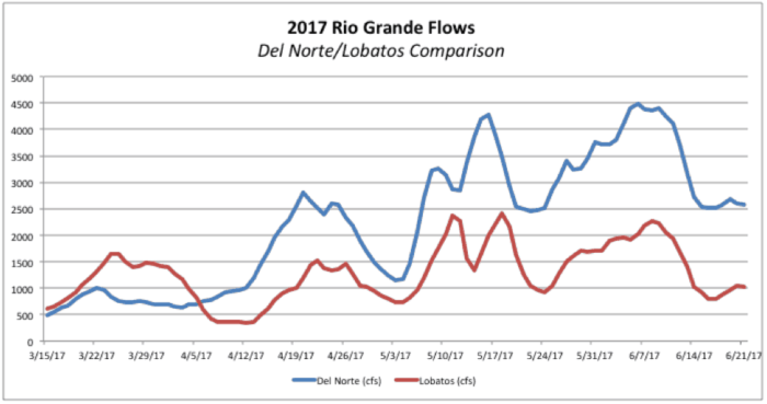 Finally, the Districtโthe entity that delivers water to farmers in the Middle Rio Grandeโjust last week finally limited its diversions to the more senior users. Despite anticipated flows of 20 percent of average, the District provided water to the most junior usersโthose that do not have any claim to waterโfrom March 1 to June 12 (104 days).