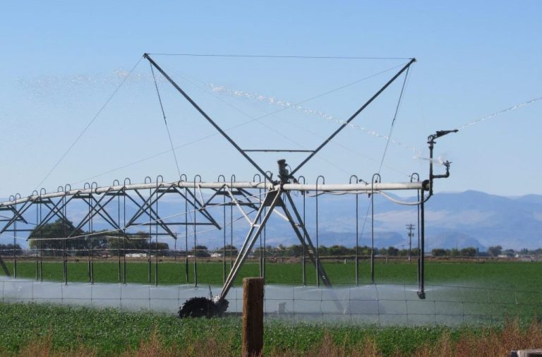 A center pivot irrigates a field in the San Luis Valley, where the state is warming farmers that a well shut-down could come much sooner than expected. Credit: Jerd Smith via Water Education Colorado