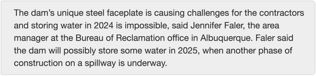 Second, the State of New Mexico provides no leadership or accountability to ensure water users in the state are only using what they need. The Middle Rio Grande Conservancy District, for example, requested a permit in 1925 to irrigate over 100,000 acres in the Middle Rio Grande valley from Cochiti Dam to Elephant Butte Dam. The District, however, has not (90 years later) ever proven that it has irrigated the acreage contemplated in the permit, nor that it needs the water it has claimed. This is a fundamental requirement under the New Mexico Constitution that is being blatantly disregarded.