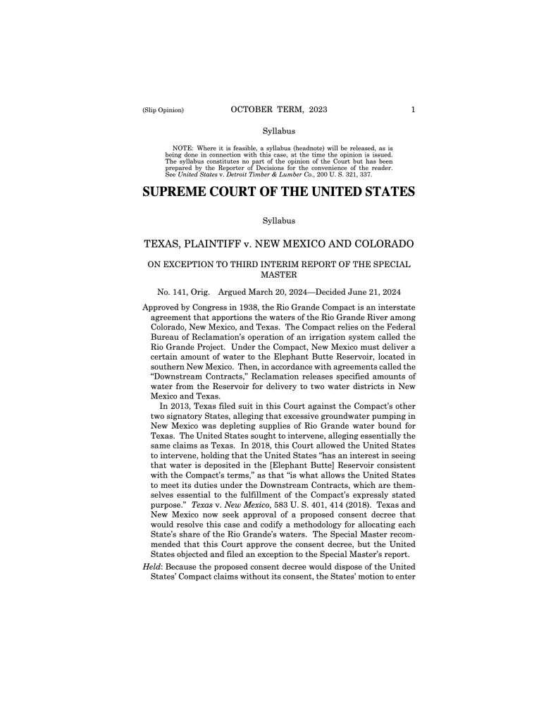 The case reached the U.S. Supreme Court after Texas sued New Mexico over a dispute regarding water in the Rio Grande Basin. Colorado, Texas and New Mexico are all parties to the Rio Grande Compact, an agreement that since 1938 has regulated the interstate apportionment of the waters of the Rio Grande. Texas did not make any claims against Colorado, but because Colorado is a party to the Compact, Colorado was also included in the case.