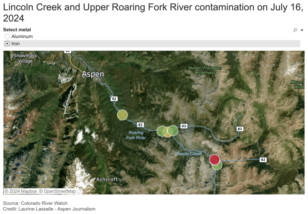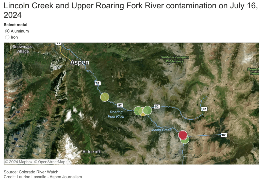 And the problem has gotten worse in recent years. The high concentrations of aluminum and copper are toxic to fish, and Lincoln Creek and Grizzly Reservoir experienced a fish die-off in 2021. In fall of 2023, there was a fish kill downstream in the Roaring Fork in the North Star Nature Preserve, which experts say was probably due to a combination of high metals concentrations and too-warm water.