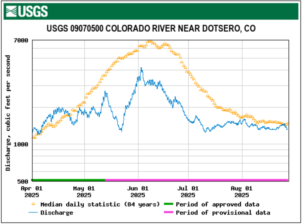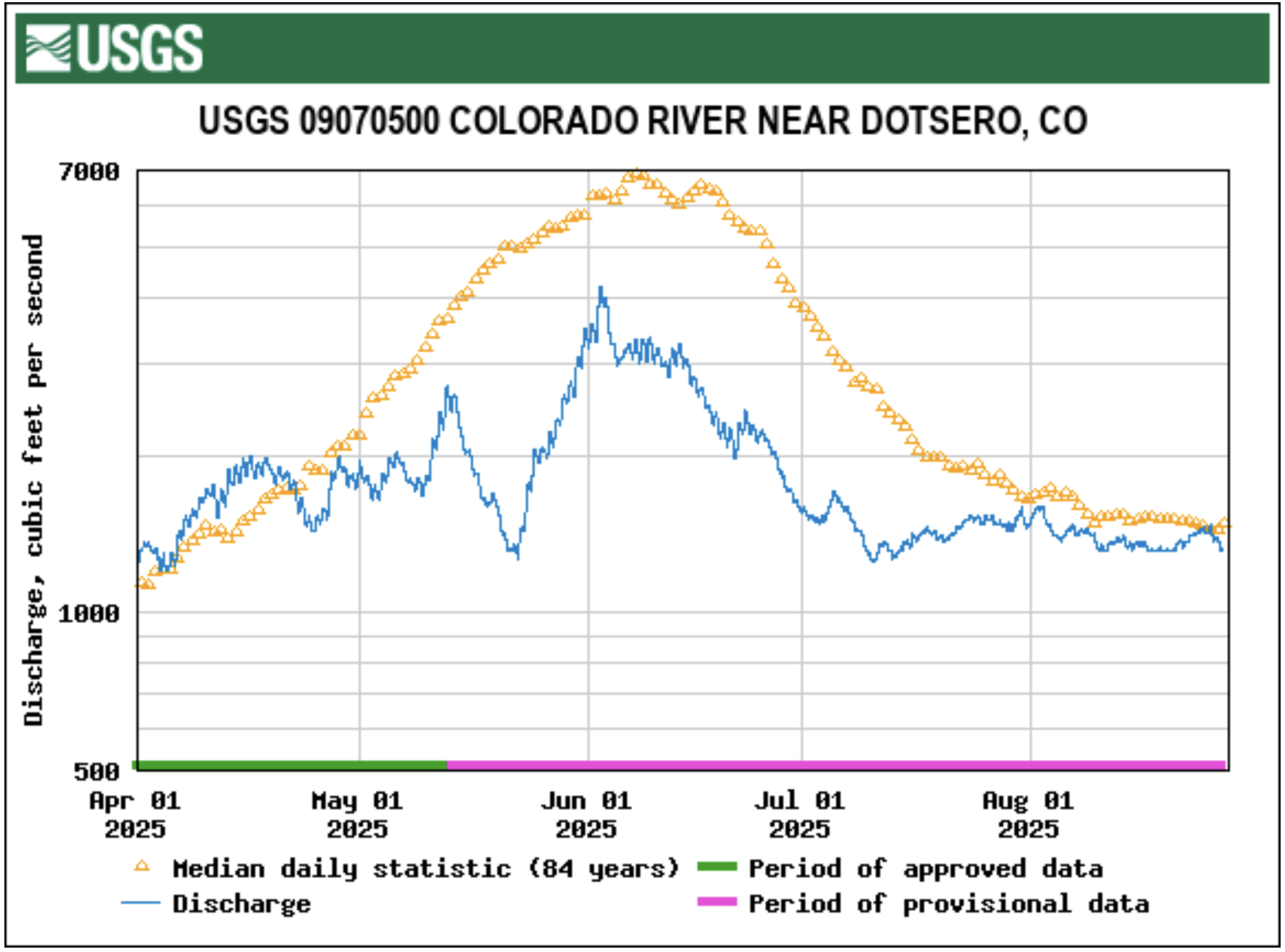 The Cameo call comes on most years in late summer. But it occurs for more days in dry years than wet ones. According to a database maintained by the Colorado Division of Water Resources, in 2019 and 2023 — both years with above-average snowpack and runoff — the Cameo call was on for 22 and 24 days, respectively. In 2020 and 2021 — two back-to-back below-average years — Cameo called for 88 and 75 days, respectively.