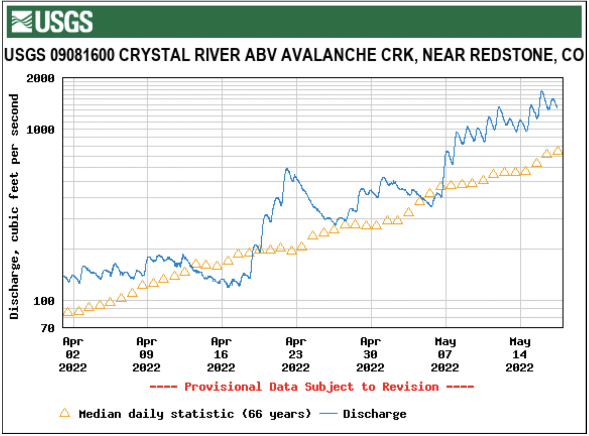 While snowpack is well above last year’s average and historical averages, river flows for many rivers only exceeded historical averages this week. The Colorado River just below Glenwood Springs reached 12,700 cubic feet per second Friday, above the historic median peak of 11,200 cfs, according to the USGS…
