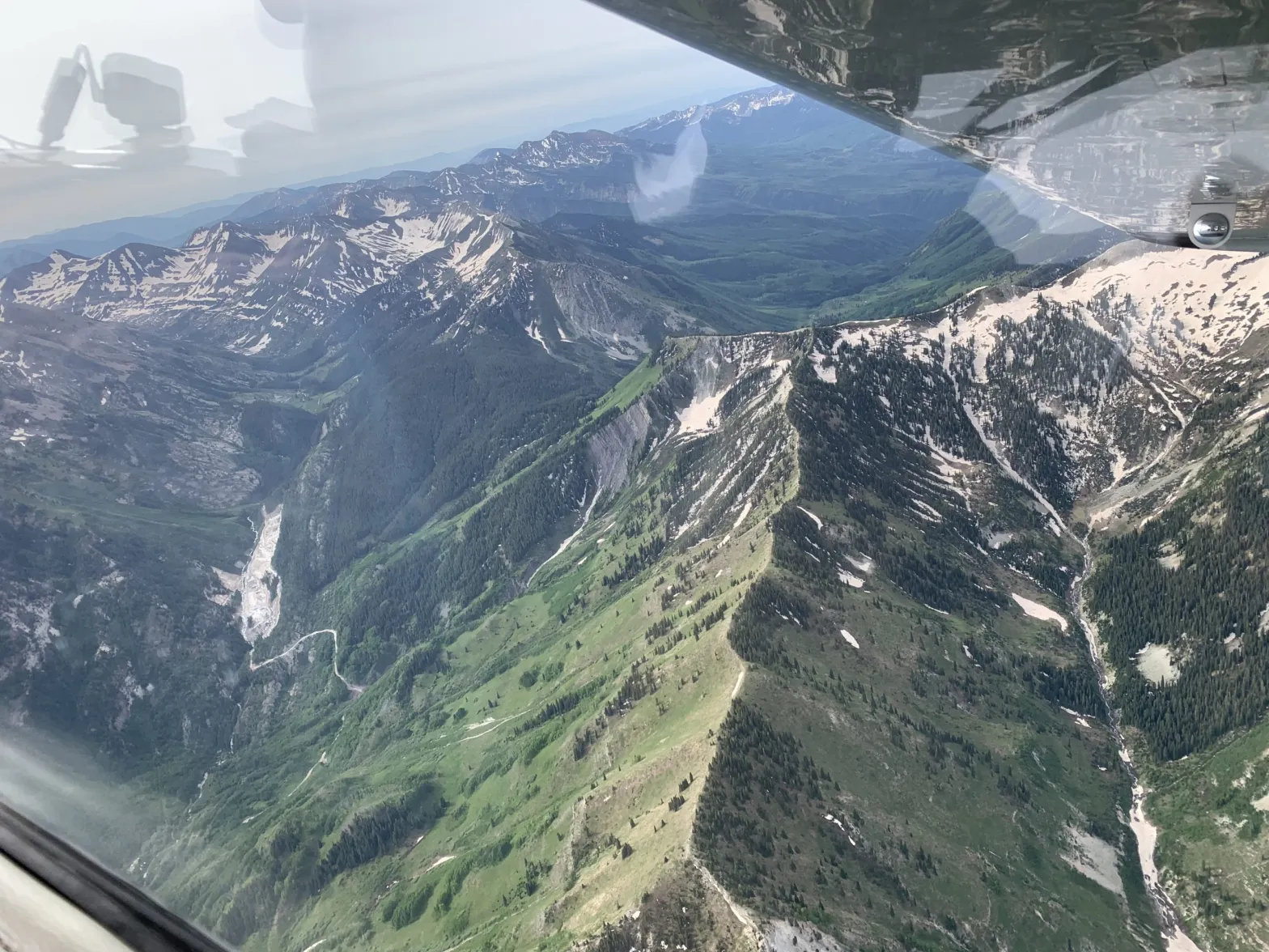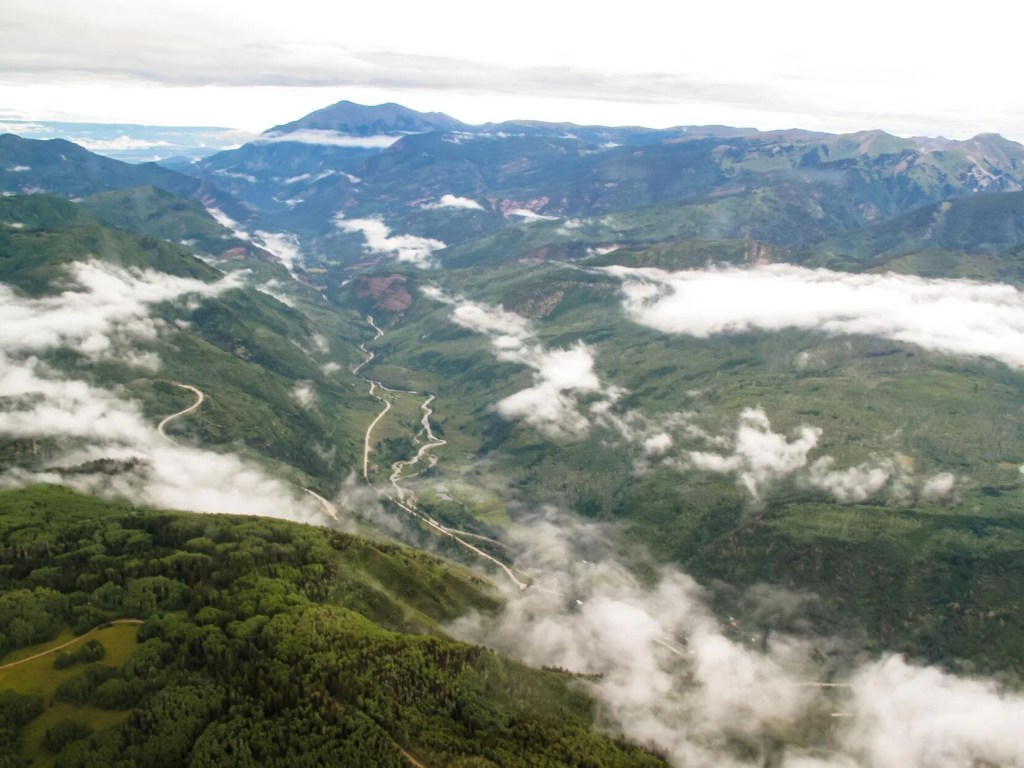 The plane took off from the Aspen airport, gaining altitude as it flew up Independence Pass to the headwaters of the Roaring Fork, down the Fryingpan River valley, around the white flanks of Mount Sopris and up the Crystal River valley before cruising past the Maroon Bells and Aspen Mountain back to the airport.