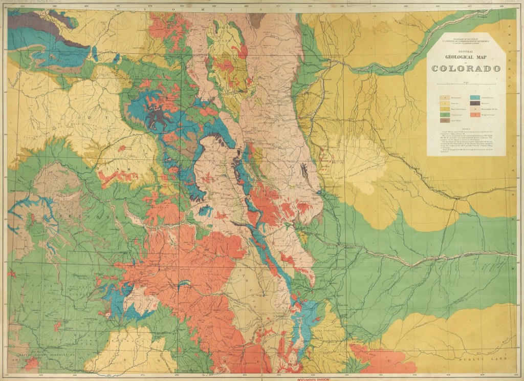 A geologic map of Colorado, produced by the survey team led by Ferdinand Hayden in 1873-74, helped draw prospectors to the mountains. CREDIT: DENVER PUBLIC LIBRARY