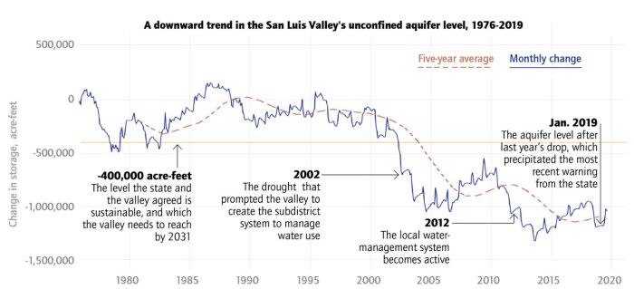 “It’s in the context of this climatic trend of reduced water supplies that the struggle to achieve sustainability in the unconfined aquifer is an acute issue,” he said. “Subdistrict No. 1 has a standard, as required by state statute and articulated in their current Plan of Water Management, that is very specific in terms of an aquifer storage level and the need to achieve that level within a specified time.