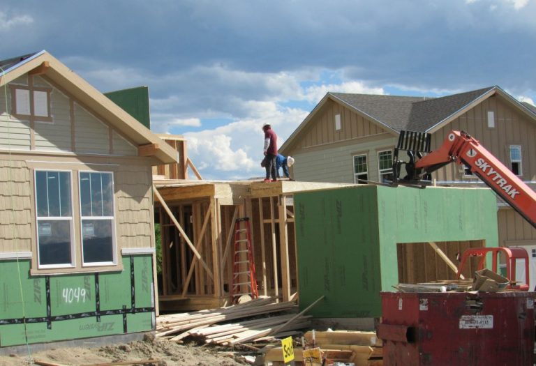 Construction workers build a single family home in Castle Rock. The community needs new surface water supplies to reduce its reliance on non-renewable groundwater. Credit: Jerd Smith