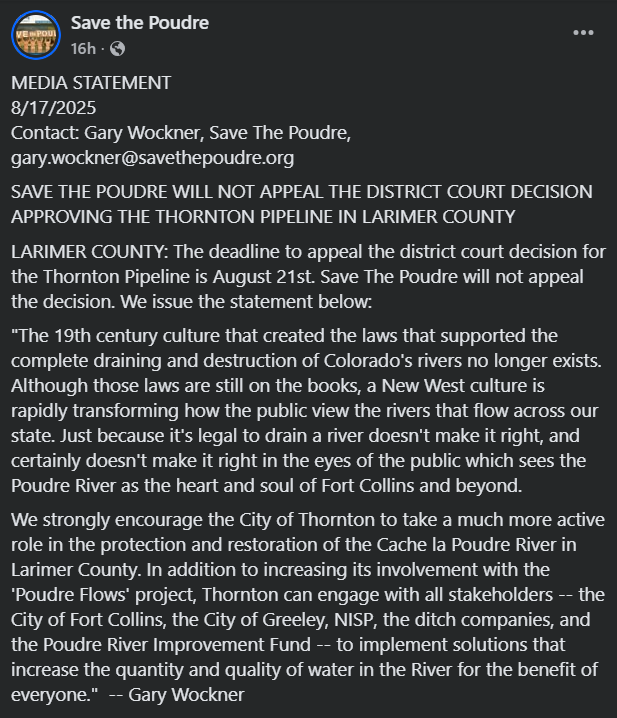 Leprino has been a net contributor to Colorado watersheds since at least 2017. In 2020, the company was granted a water right associated with the quantity of water that it conveys to the Poudre River after deducting the amount of water that it takes in from municipal sources.