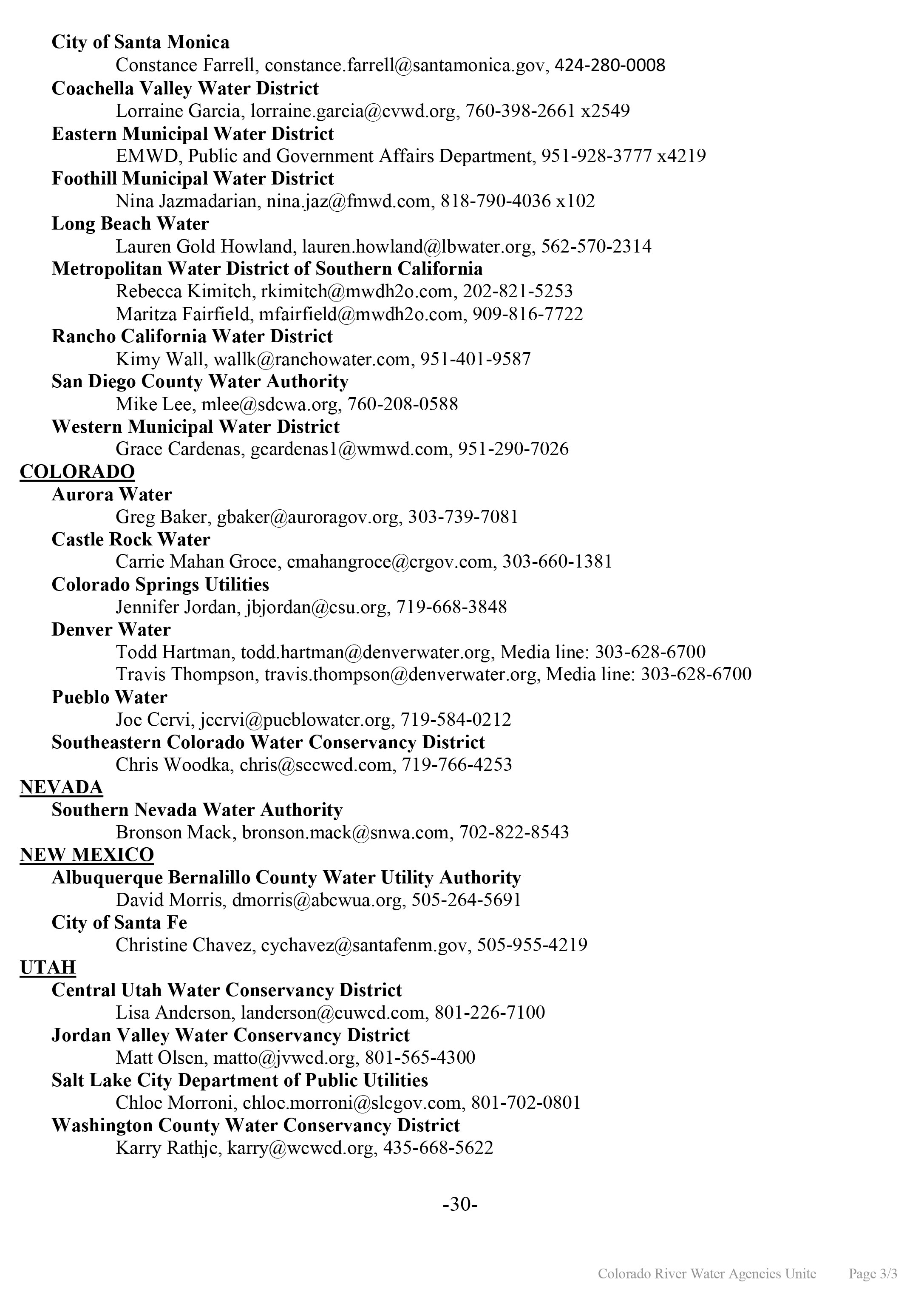 The water providers are outlining their commitments in a Memorandum of Understanding that was delivered to Bureau of Reclamation Commissioner Camille Touton today. Some providers have committed to pursuing the MOU’s intent while awaiting final approval through their various governing boards.