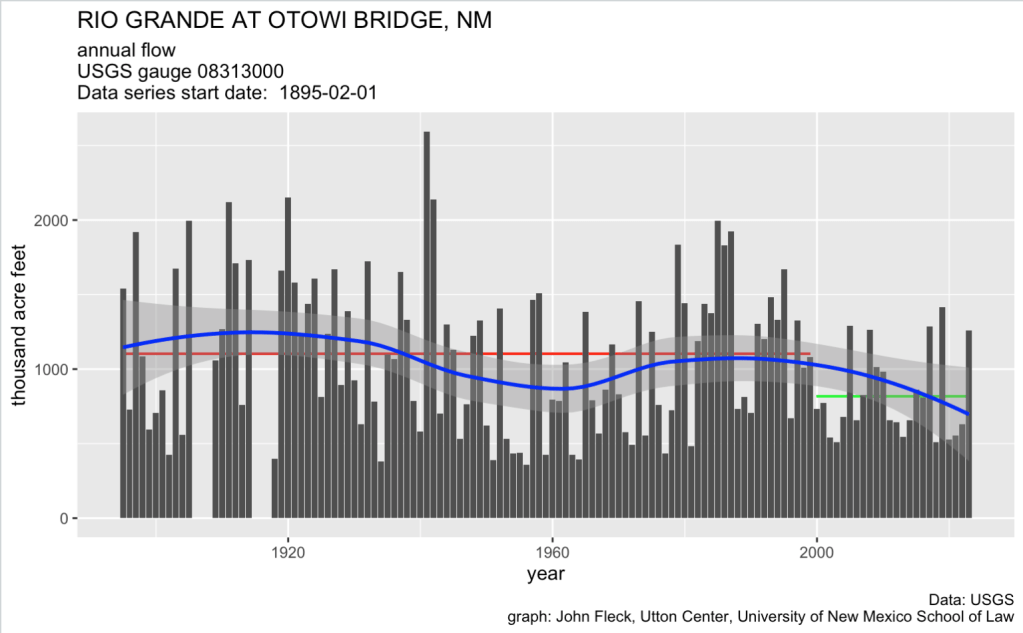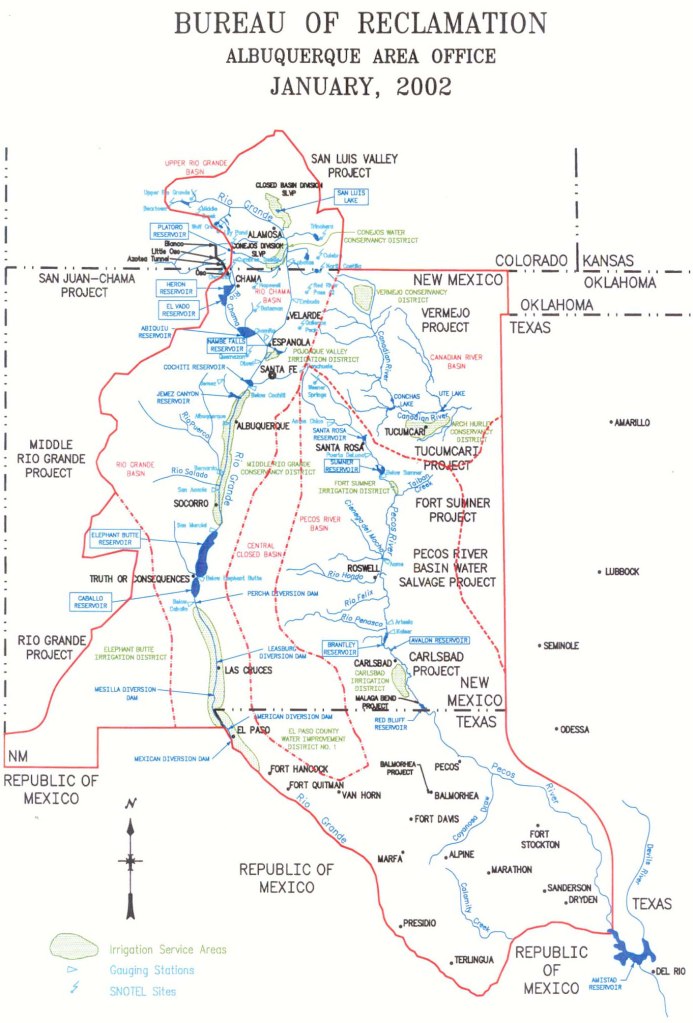 Native American farming is a more complicated story that I don’t fully understand. State and federal law recognize the fact that they were here first – we really do kinda comply with the doctrine of prior appropriation here. Their priority rights – “prior and paramount” – were enshrined in federal law in the 1928 act of Congress that kicked in federal money through the predecessor of the Bureau of Indian Affairs – crucial money to get construction of the Middle Rio Grande Conservancy District started when no one else – neither the rest of the federal government, nor the bond market – was willing to pony up the money. (Buy our new book Ribbons of Green, as soon as UNM Press publishes it! It includes a deep dive into the critical role of the Pueblos in supporting the formation and early funding of the MRGCD, without which there likely would be no MRGCD.)