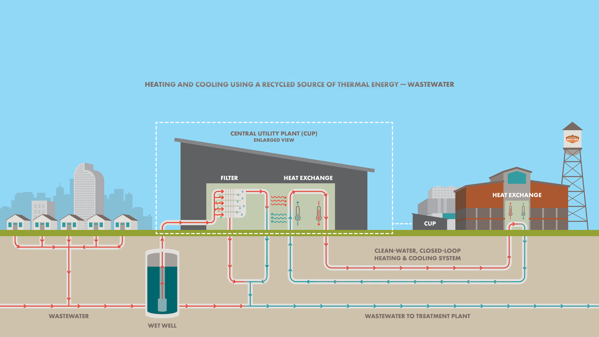 Viewing wastewater as an opportunity – and, specifically, as an important source of thermal energy, nutrients, and fresh water – is at the core of a principle called “One Water.” The theory holds that water has value in all its forms and may be managed through integrated systems and technologies that together improve water quality, access, and sustainability on an increasingly thirsty planet. The sewer-heat recovery system at the National Western Center exemplifies the One Water concept, and university students and researchers will continue to study the system and its benefits, Hittle said. In the forthcoming Hydro building at CSU Spur, researchers with CSU’s One Water Solutions Institute also will advance the One Water idea by testing new technologies for the treatment and use of wastewater, stormwater, and roof runoff.