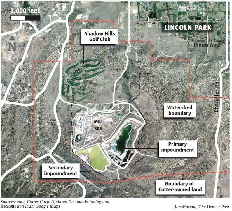 The original groundwater contamination in the Lincoln Park community was caused by the discharging of the uranium tailings into unlined tailing ponds. The ponds were closed in the early 1980s when the EPA listed the area as a Superfund site, and the waste was excavated and put into new lined ponds. The new ponds cut off most of the groundwater contamination, and, since then, the EPA has since declared the contaminated ground water status as “under control.”