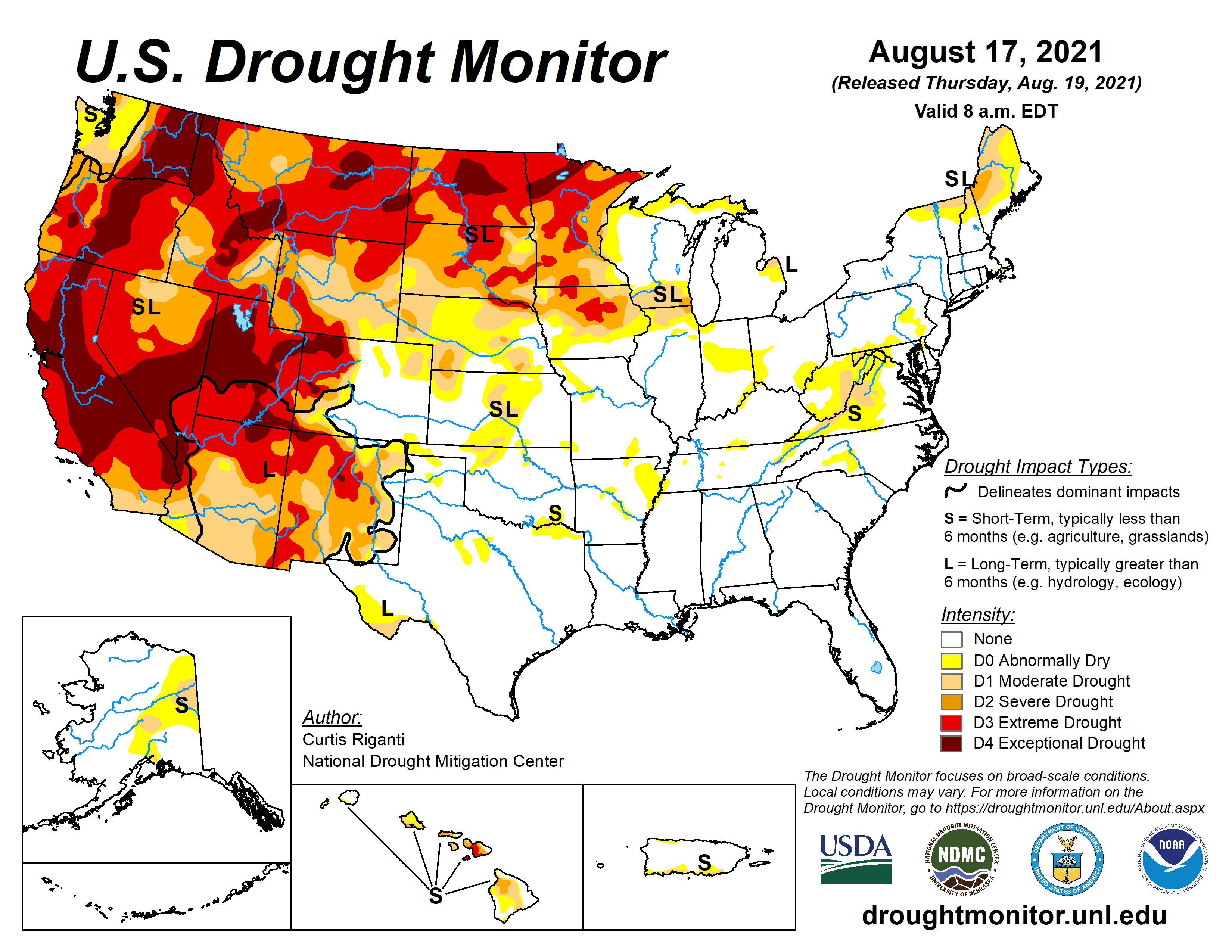 US Drought Monitor August 24, 2021.