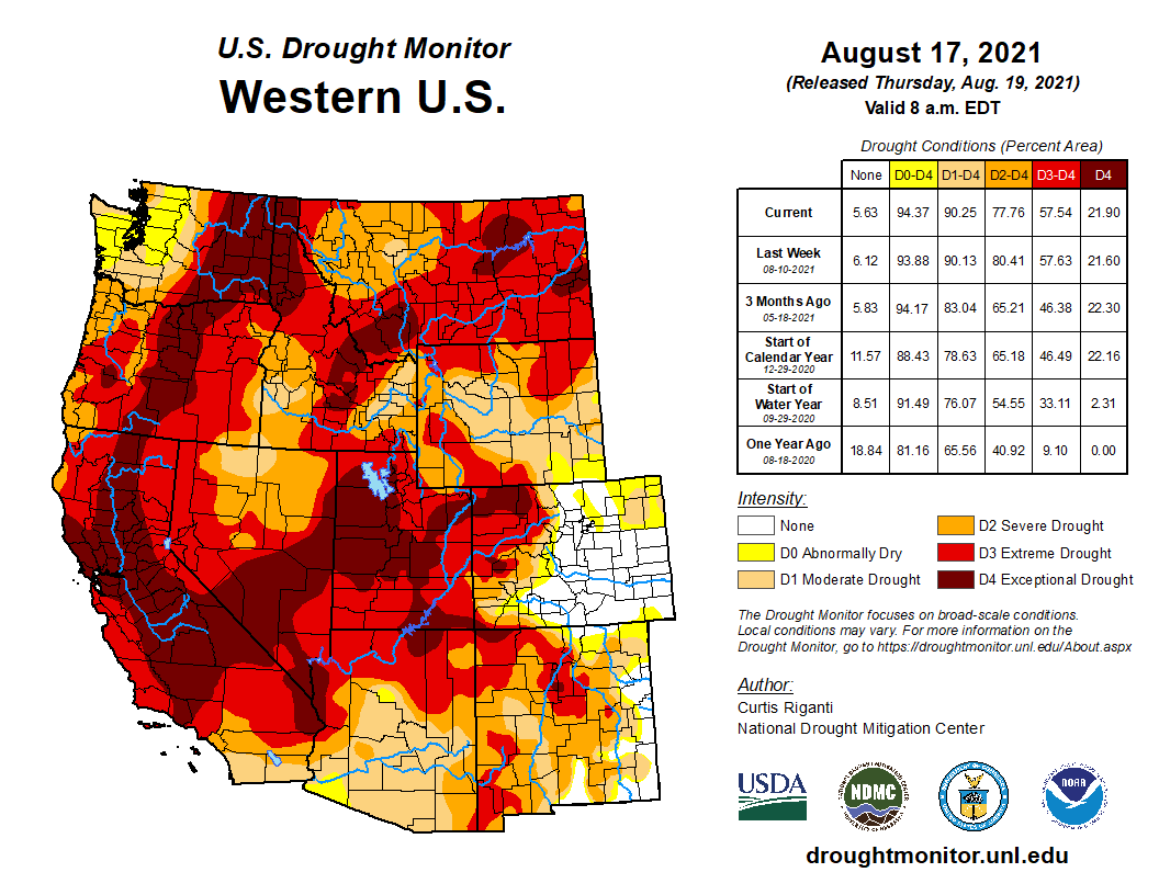 West Drought Monitor August 24, 2021.