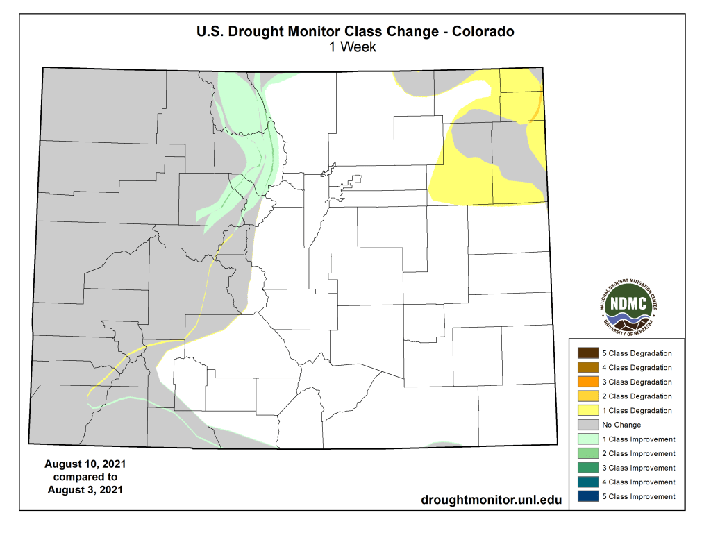 The Southwest monsoon season began in earnest during the second half of July, bringing some rainfall to the drought-stricken region. Portions of Colorado, Nevada, New Mexico, Utah and Arizona saw some improvement in the drought intensity, but still remain entrenched in drought.