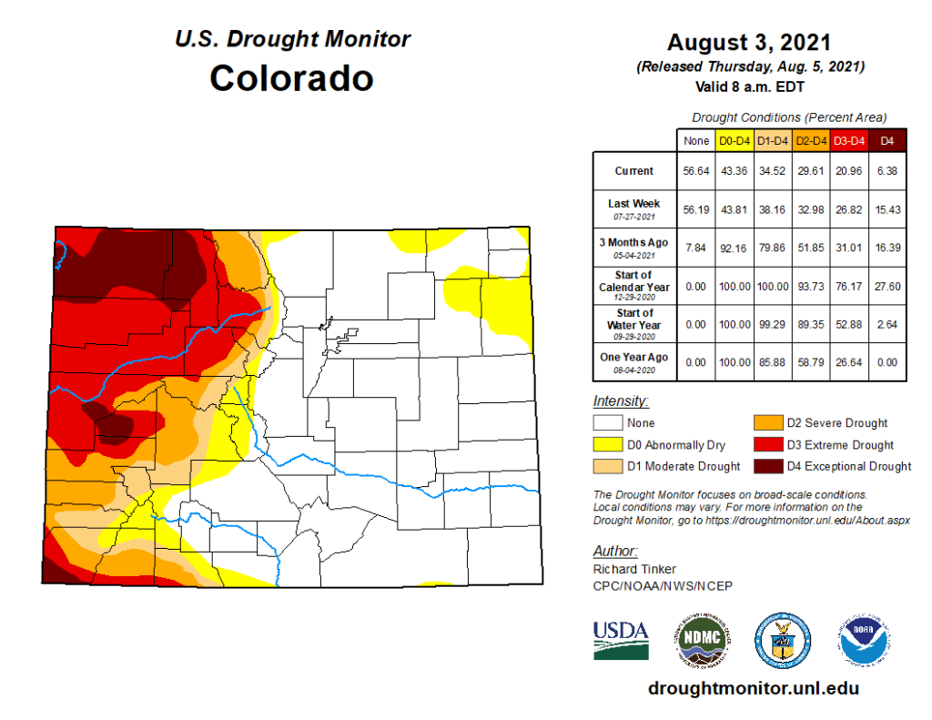 Colorado Drought Monitor map August 10, 2021.