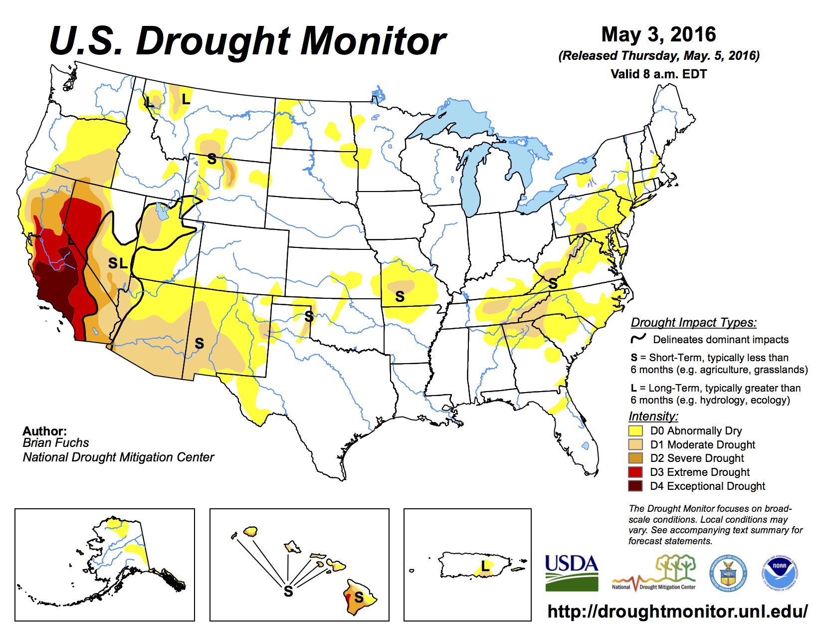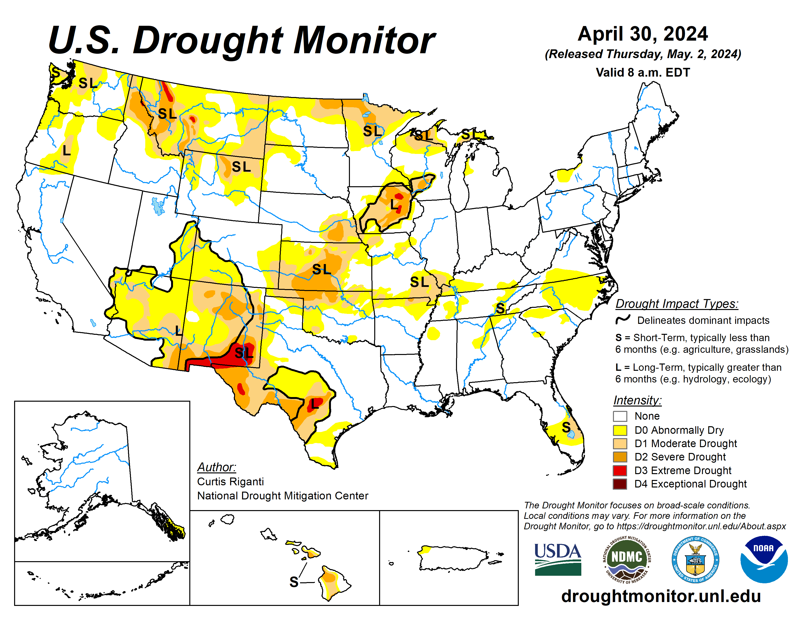 US Drought Monitor map May 2, 2023.US Drought Monitor map May 3, 2022.US Drought Monitor map May 4, 2021.US Drought Monitor May 5, 2020.US Drought Monitor May 7, 2019.US Drought Monitor May 8, 2018.US Drought Monitor May 2, 2017.UD Drought Monitor May 3, 2016.US Drought Monitor May 5, 2015US Drought Monitor May 6, 2014US Drought Monitor May 5, 2013US Drought Monitor May 1, 2012US Drought Monitor May 3, 2011.