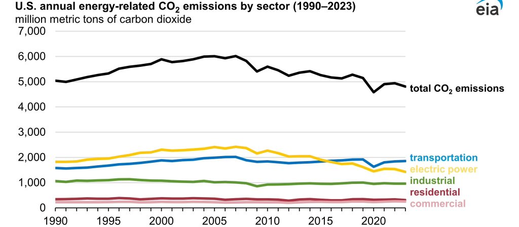More problematic: All those declines are more or less concentrated in the power sector, and we need to make more rapid progress with transportation, industry, and buildings (as well as non-energy emissions from agriculture).