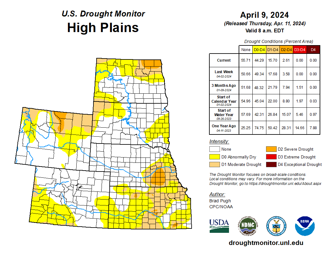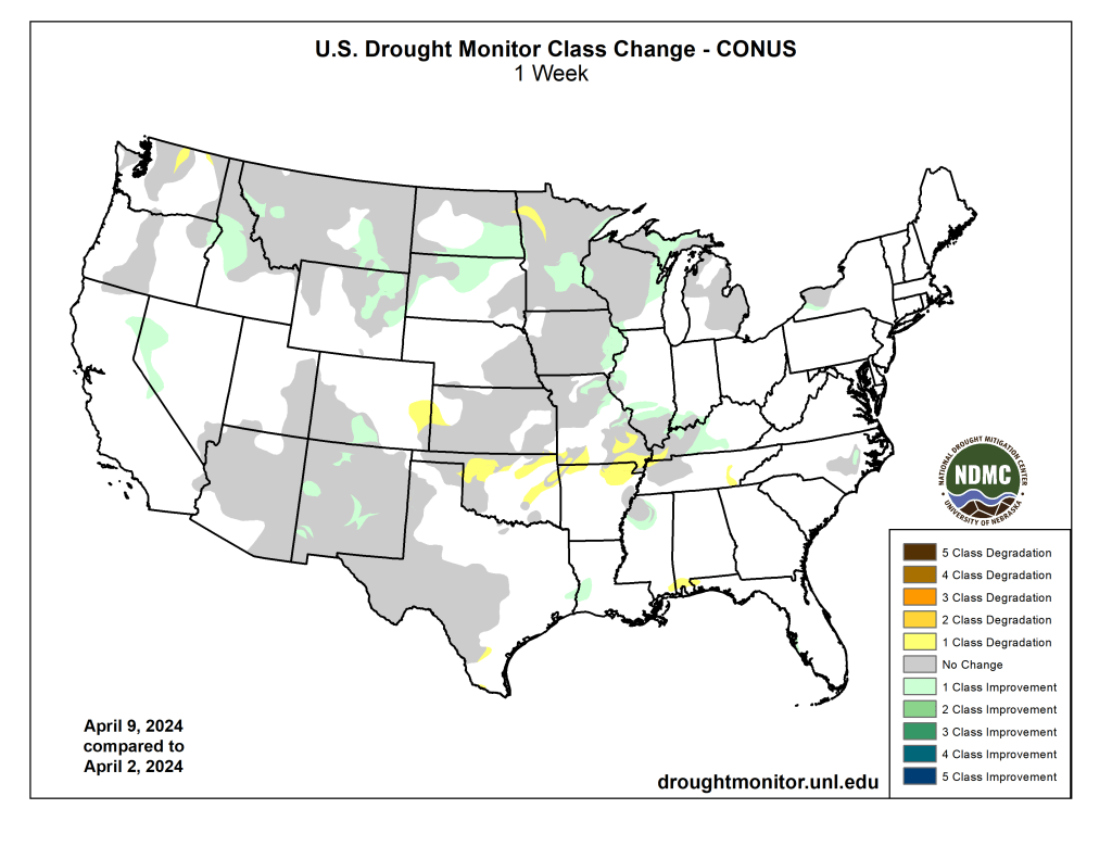 32% of the Lower 48 is short/very short; 8% more than last year at this time. Dry soils are most prevalent in NM and the North Central. The Southern Plains too, although in better shape than last year.