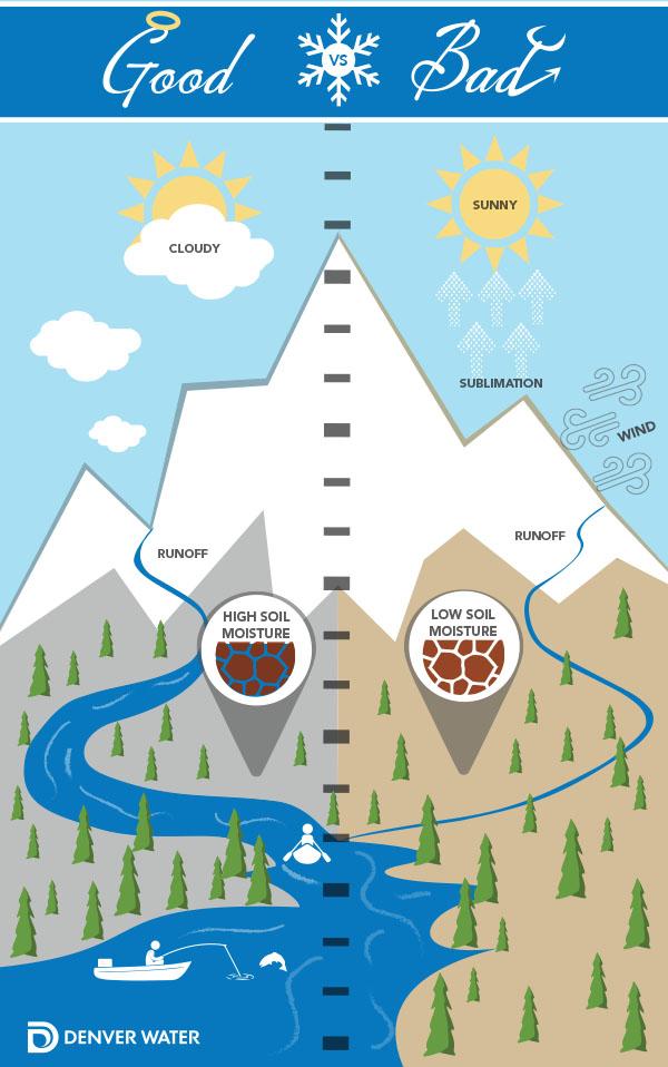Low soil moisture can soak up snow runoff, leaving less for rivers and reservoirs. Image credit: Denver Water.