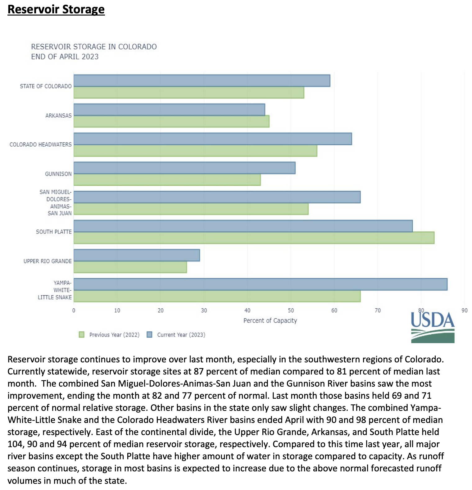 May 1, 2023 Colorado reservoir storage. Credit: NRCS