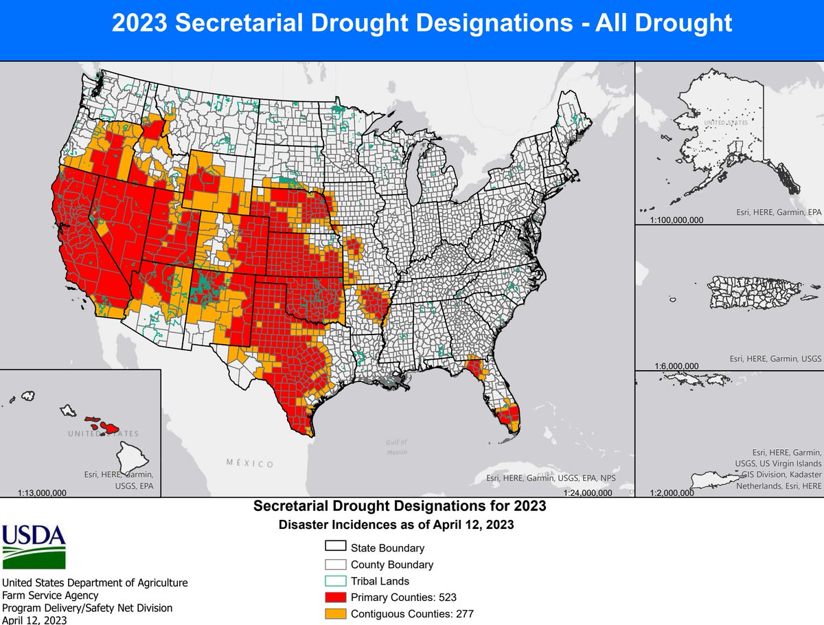 The Subsoil Percent S/VS map shows conditions drying most along parts of the East Coast. https://agindrought.unl.edu/Other.aspx