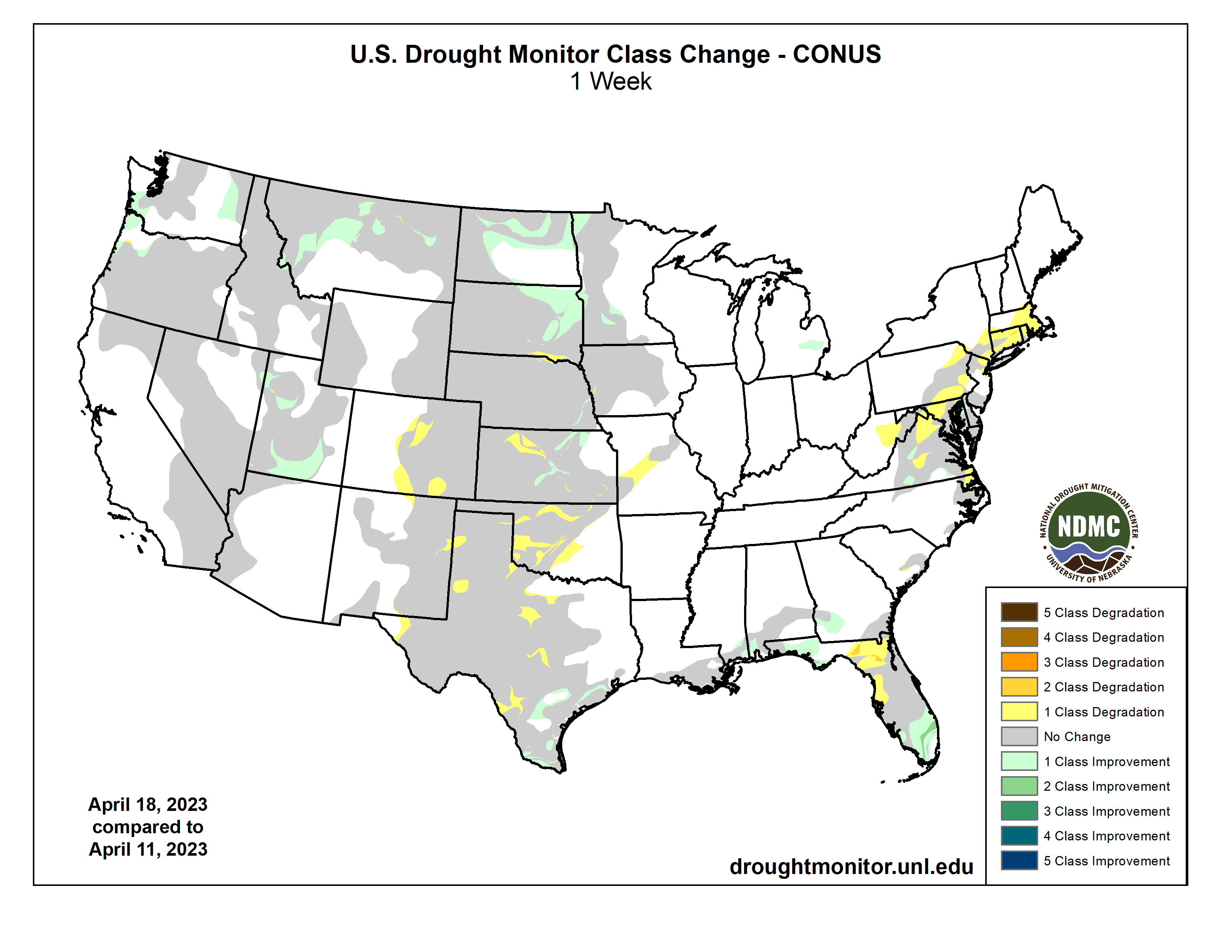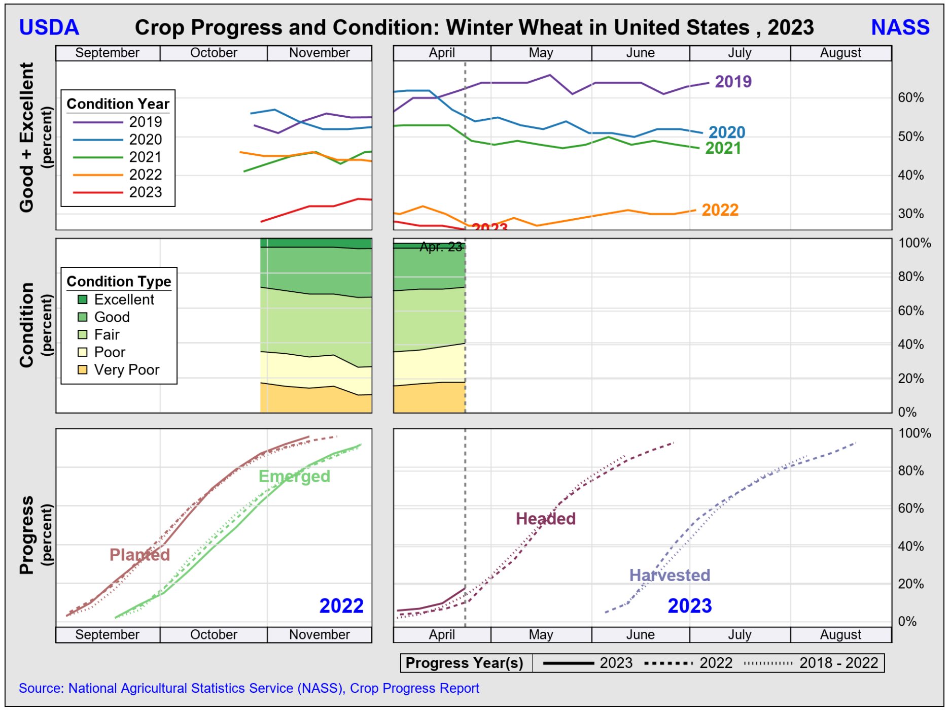 The percent of winter wheat in poor to very poor conditions is highest in the Central and South Plains and increased by 2 to 10 percentage points in those states — @DroughtDenise
